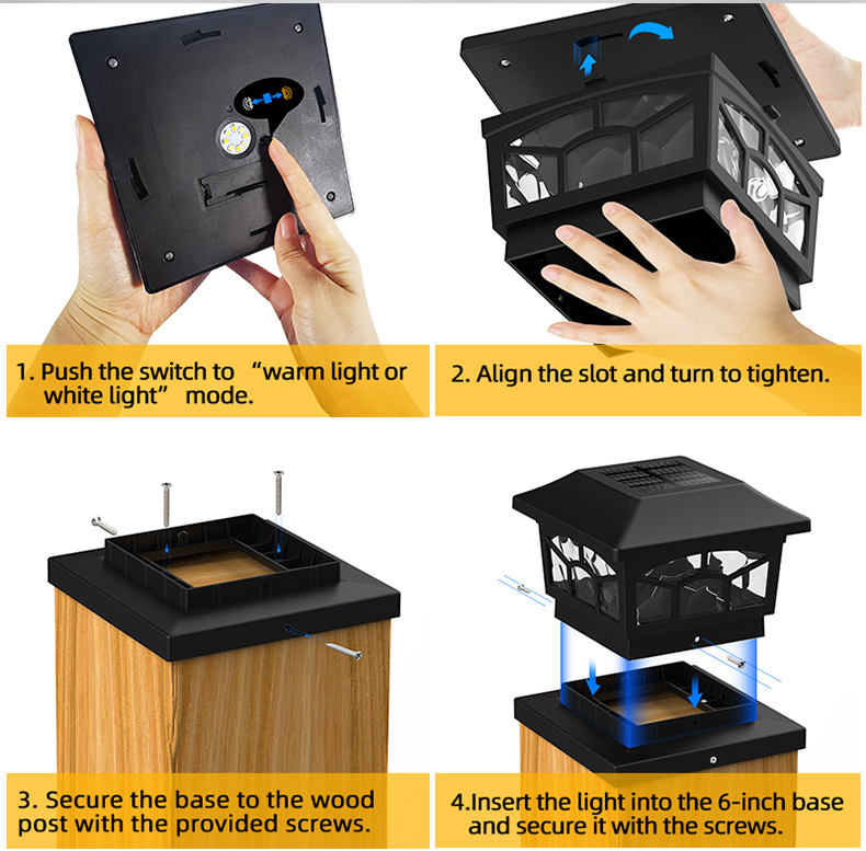 Τα χαρακτηριστικά του Dual Mode Solar Post Cap Light Solar Light Garden: